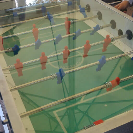 A játékosoknak, fém rudakhoz erősített bábukkal az ellenfél kapujába kell juttatni a labdát. Az a csapat nyer (piros vagy kék) aki eléri a legtöbb gólt.
